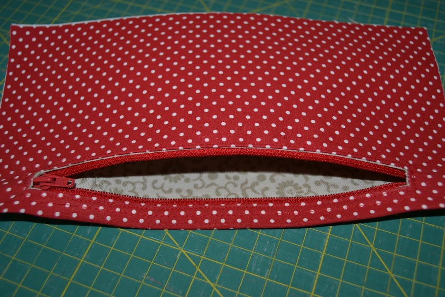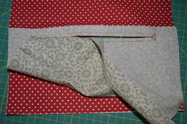 Bajar la tela roja. Quedará como un sandwich con el bolsillo en medio: