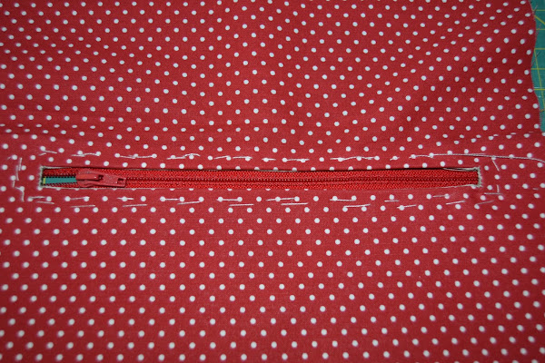 Colocar cremallera por la parte de atrás, hilvanar para sujetarla y coserla a máquina: