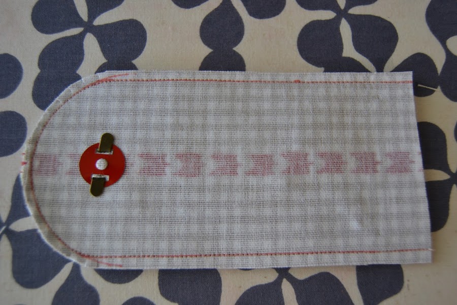 Pasar un pespunte a 1cm del borde superior para que la tela roja y el bolsillo queden fijados por arriba:
