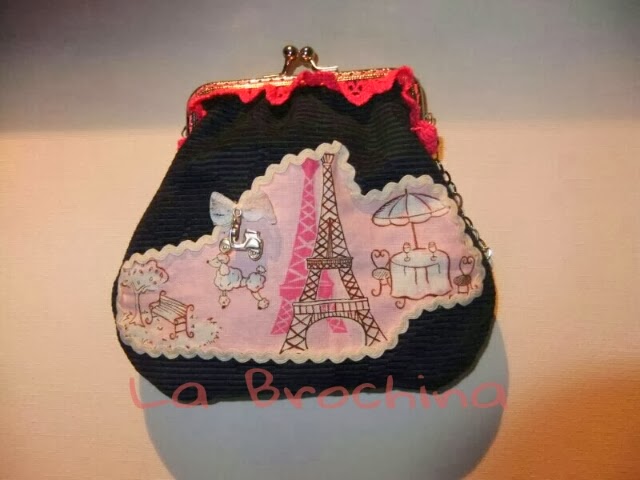 Bolso vintage París. Asa negra boquilla metálica, encaje rosa, lino estampado con motivos vintage........ Que más se puede pedir. Detalle de camafeo con la torre Eiffel. Bolso árboles Lino estampad ...