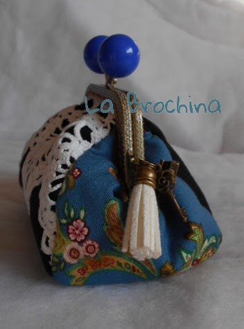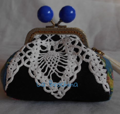 Encaje blanco, sobre fondo negro. Boquilla metálica con cierre de color