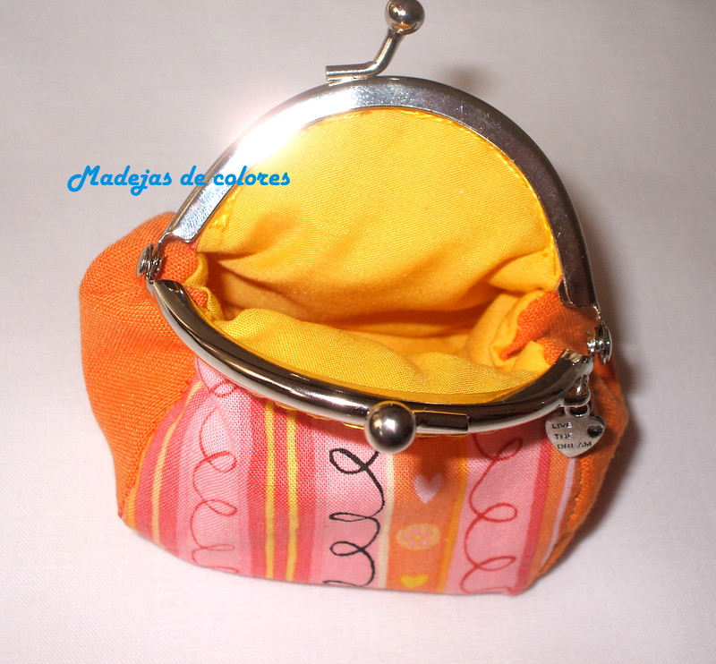 Son unos monedero con boquilla, utilizando en cada uno, el color favorito de la destinataria y colgando por un lado un charms corazón.