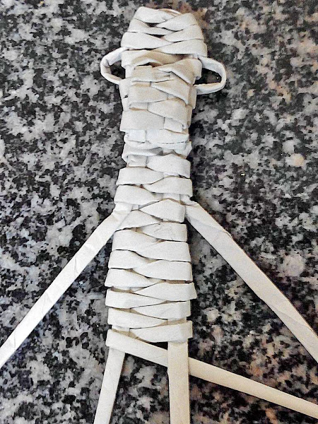 Pegamos otro churrito por la parte de adentro y empezamos a trenzar rodeando de abajo a arriba y de un lado para otro.