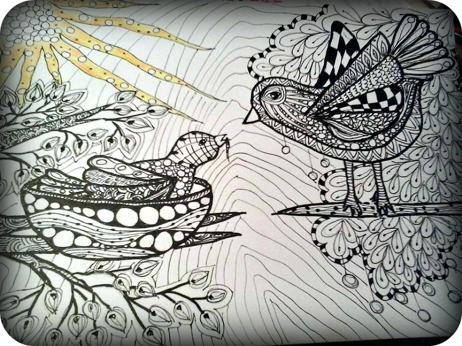 Me he pasado a las agujas de coser y a las telas , pero es un trabajo largo y laborioso y no va demasiado rápido , es por eso que , como ya me estoy retrasando en publicar en el Sólo Mar , he decidido mostraros el reto del pasado mes del grupo de Zentangle en el que estoy.