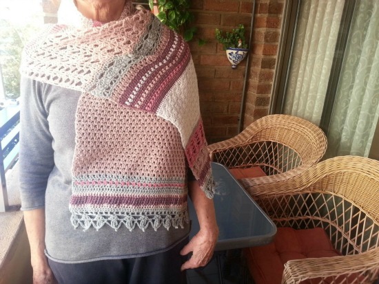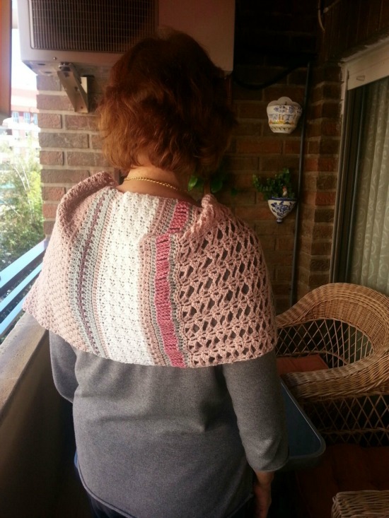Y bien, ¿qué os parece? ¿a que es preciosa? Tengo que reconocer que la combinación de colores ha sido un gran acierto. Os presento a mi madre, con su estola puesta.