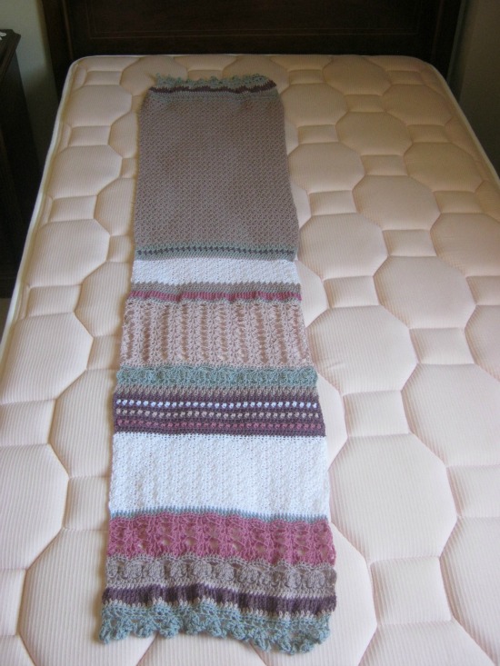 Si acudís a ver el diseño original, os daréis cuenta de que no es exactamente igual a aquel, ya que yo le hice alguna modificación, alargándola un poco más y añadiéndole una puntilla en ambos lados, ya que el original solo llevaba puntilla en uno de los extremos.
