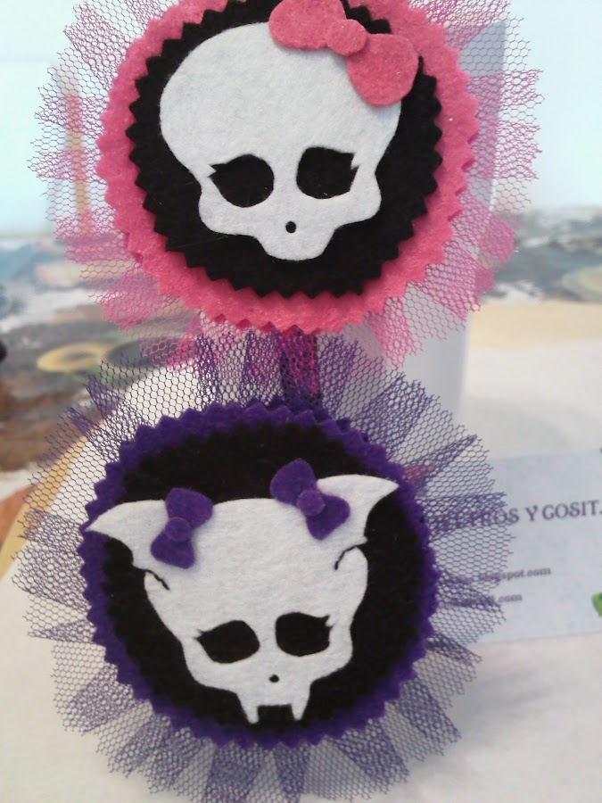 Nuevos modelos de diademas y broches de Monster High hechas con fieltro y tul, a mi me gusta bastante el resultado,espero que a las nenas también..