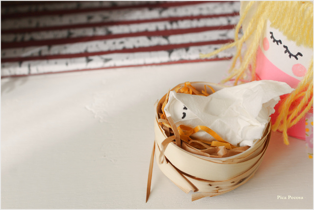 Yo a este le puse unas ramas del arbusto que tenemos en el patio para que la caja no se viese sosa (me pilló el portero cortándolas y me morí de vergüenza), pero si quieres aún más minimalismo puedes dejarla tal cual y queda igual de bien.