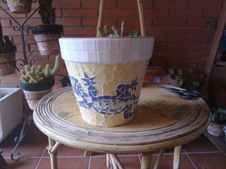 Este es otro trabajo con el mismo método pero revistiendo unas macetas de barro quedan muy chulas .Y ya todo es cuestión de imaginacion