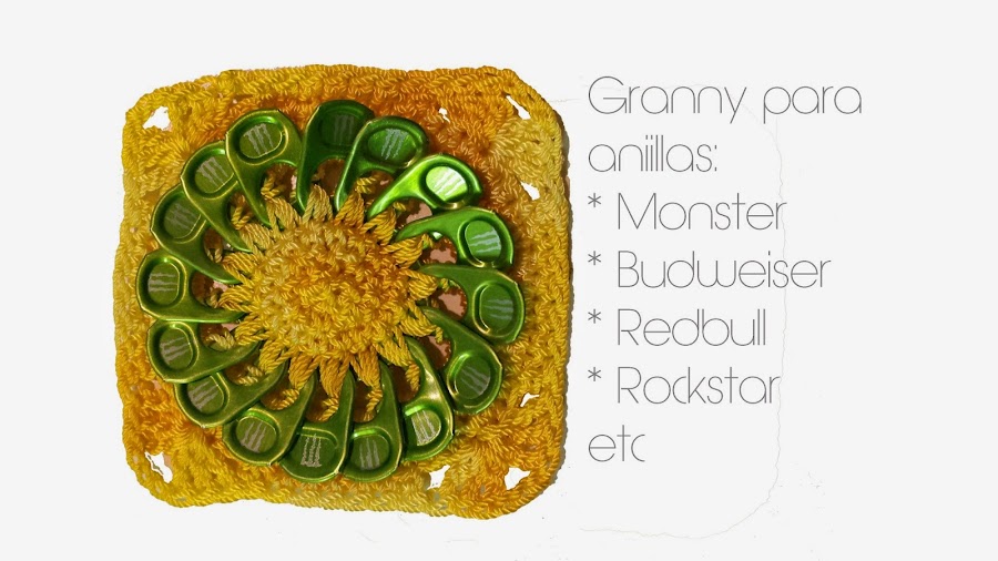 Hi friends! This time I did this granny square with single hole pop tabs (Monster, Redbull, Budweiser, Rockstar, etc). With these grannys we can make purses and handbags. Here are some photos of a handbag I made with these grannys and of course the tutorial (Spanish). This is on my list of things to do in English.