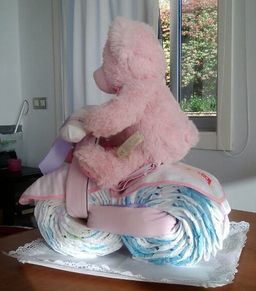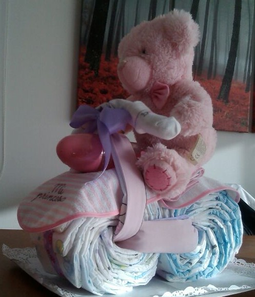 Hola! Hoy quiero mostraros un encarguito que me hicieron para una futura mamá.Al principio era una tarta de pañales pero al final acabaron pidiéndome que si podía hacer una moto?!Así que esto fue lo que nos salió: Hello!Today I want to show you an order that they did it for a future mom.At first they wanted a cake of nappies but at last they asked a motorbike of nappies?!So that this was the resul ...