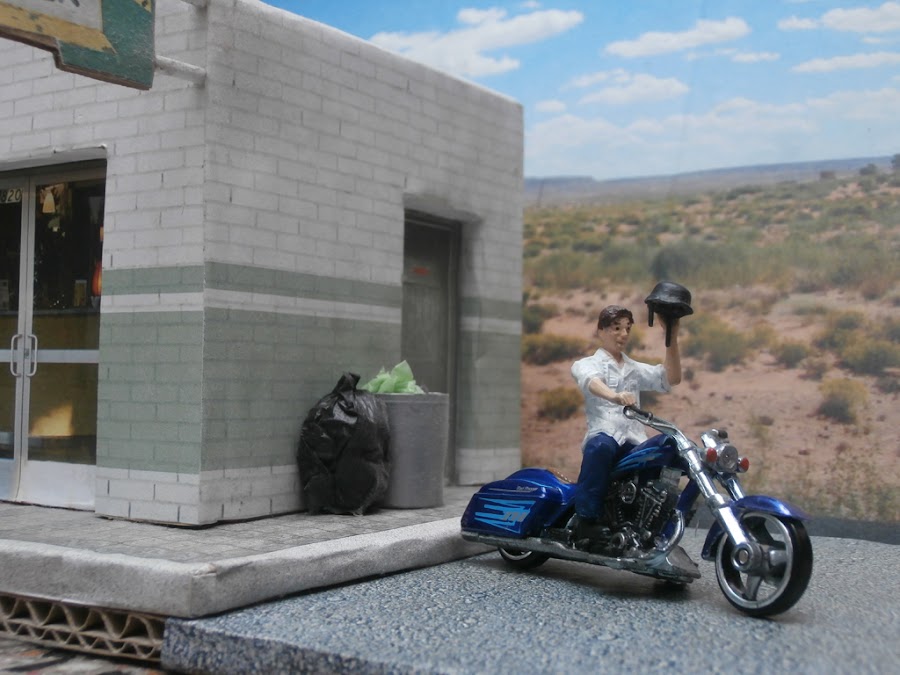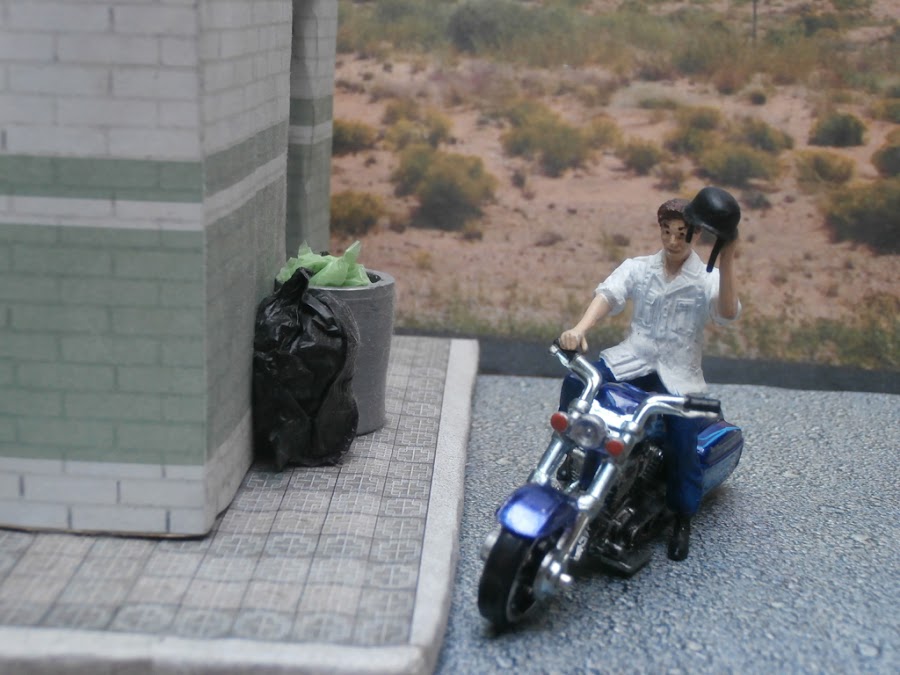 Le hice algunas modificaciones con masilla expoxi justamente para que parezca un motociclista y no un soldado.