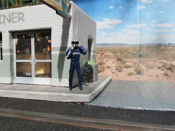 Esta nueva figura que se suma a la coleccion, es de plomo y era un piloto de Formula 1 con los brazos en alto, como no encajaba en mi coleccion de civiles, le fabrique los brazos con masilla epoxi y con pintura y algo de decoracion lo transforme en un motociclista