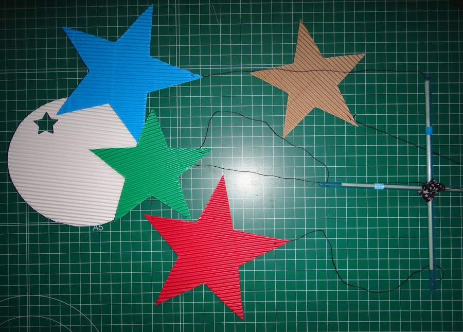 Finalmente, hay que coser cada estrella en su extremo del palito, y la luna en el centro.