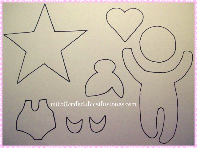 2. Aquí os voy a dejar los moldes de las partes del móvil como la luna,la estrella,el corazón y como no la bailarina,sólo tenéis que descargároslo y ya tenéis vuestros moldes,así podréis cortar los que queráis.