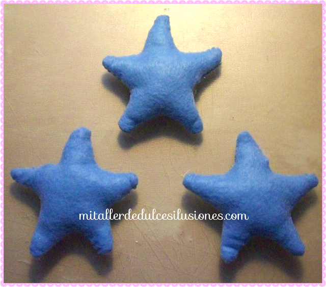 4. Llega el momento de coser ,si tenéis máquina de coser perfecto,será un poquito más rápido,pero si lo coséis a mano como son figuras pequeñas pues poco a poco,recordar que cuando las cosáis dejar siempre un trocito sin coser porque por ahí será por donde rellenaréis la figura,la coséis ,la dáis la vuelta para que no se vean las puntadas y la rellenáis metiendo poco a poco la wata con la ayuda de algo finito,yo uso la parte de atrás de un pincel.