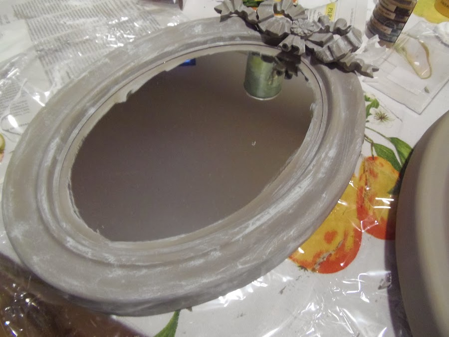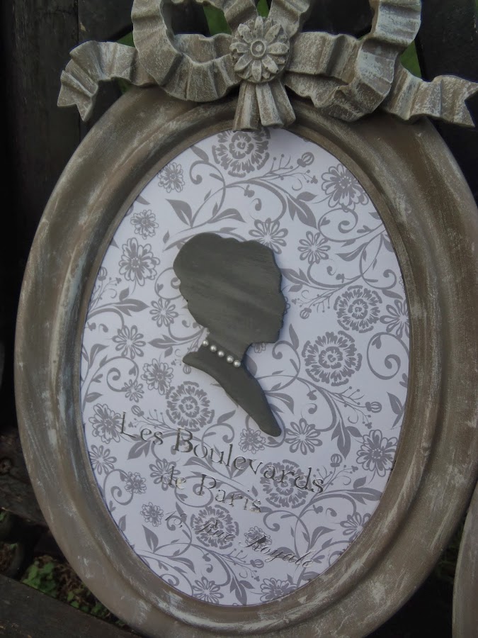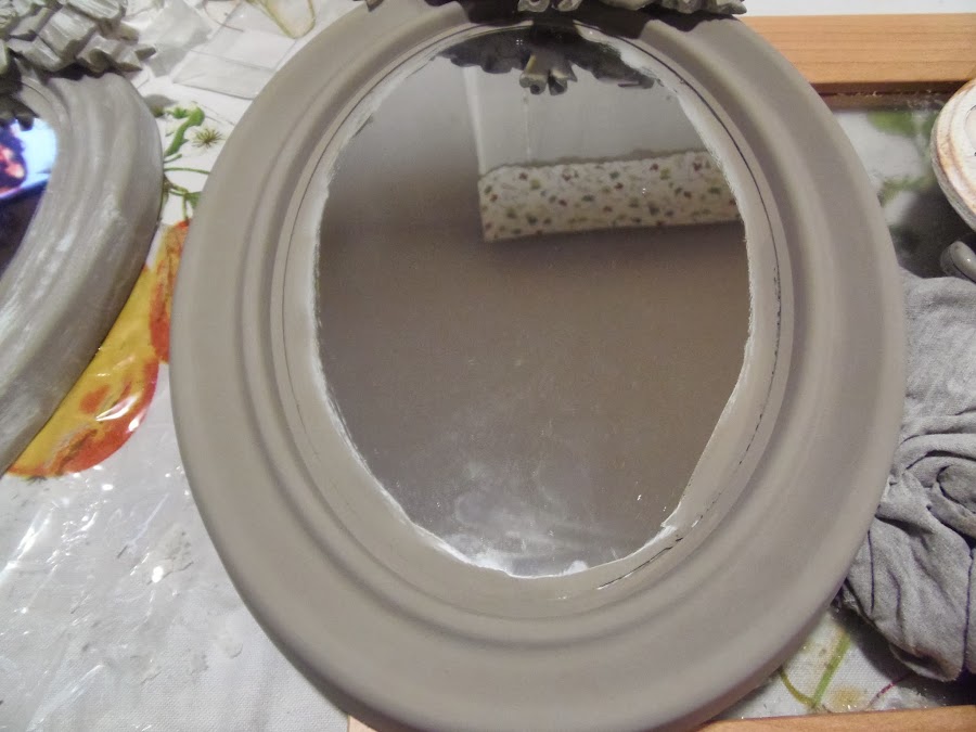 Quitamos el espejo qué nos servirá de plantilla para cortar una madera fina y un papel decorado qué será la base,unas siluetas de madera de Visi
