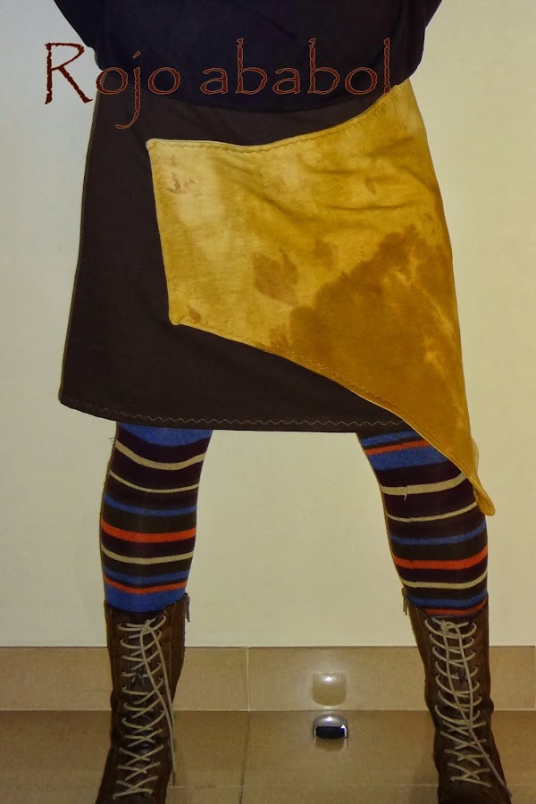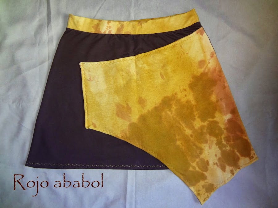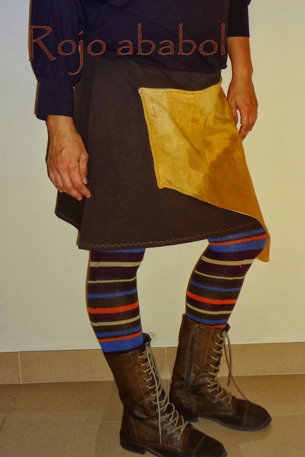 Al ondularse y estirarse la tela de la solapa no tuve más remedio que coserla a la falda en el lateral y en la parte superior. La verdad que me gusta también, mi idea principal era hacerla no reversible, por aquello de que la tela elástica coge formas, así que más que contenta :-)