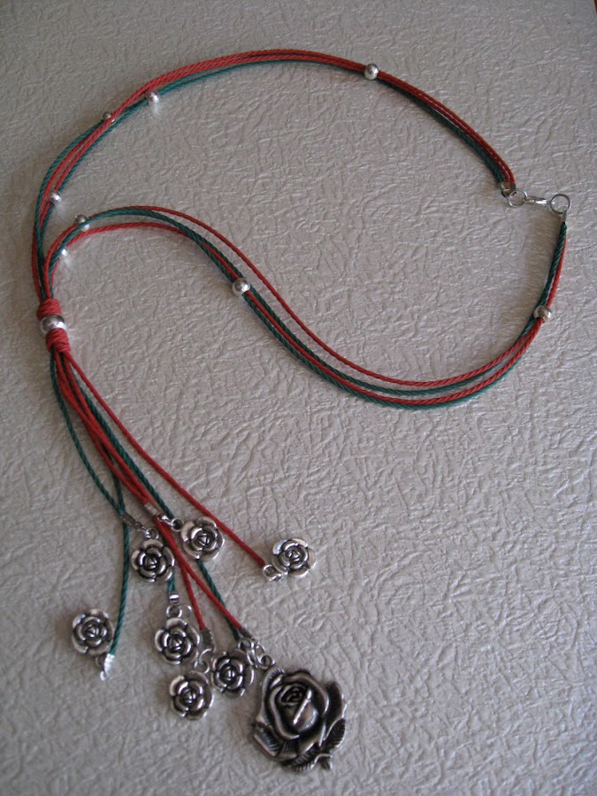 La segunda rosa que os quiero regalar en este caso en forma de collar y que es una idea de mi buena amiga Mercè del blog Bisuteriaycia , también hizo las pulsera y los pendientes . Son una muy buena propuesta para el día de Sant Jordi como el día de la madre no os parece ? Si quieres saber como se hacen no os perdáis su blog.