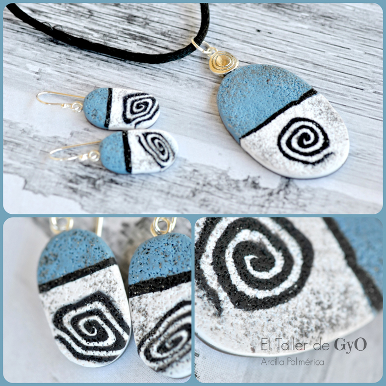 MUDRA AZUL. Colgante pequeño y pendientes.