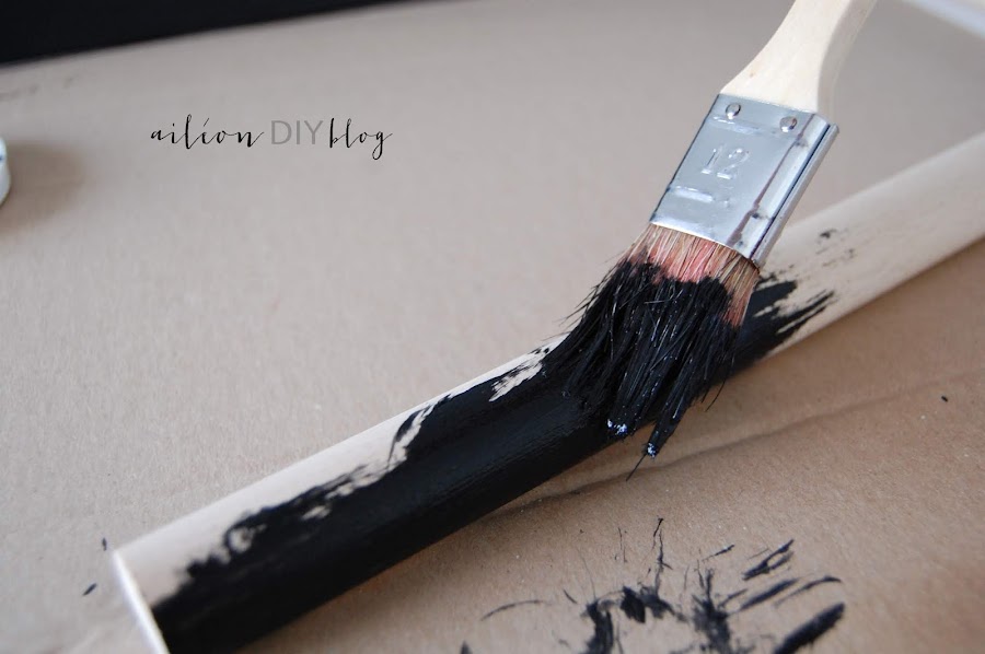 Los materiales son la caja, cuatro patas de madera, un tablero de madera, pincel, pintura negra, spray transparente y adhesivo ceys.