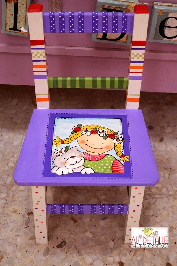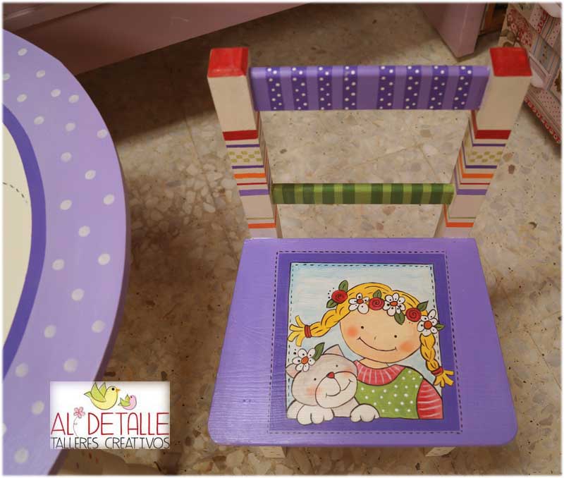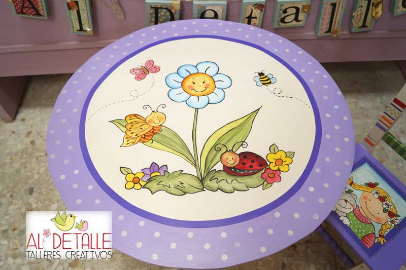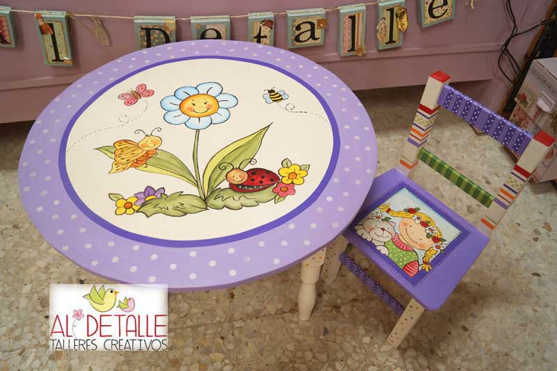 Esta mesita la hemos decorado con colores alegres.