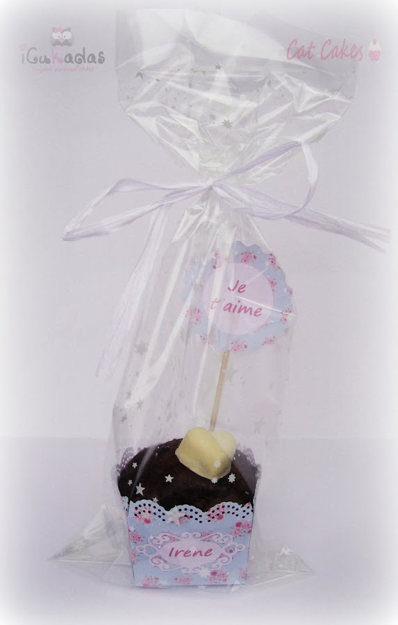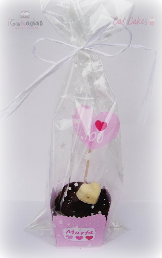 El año pasado fueron los bouquets de cupcakes y este año hemos hecho muffins de chocolate personalizados.