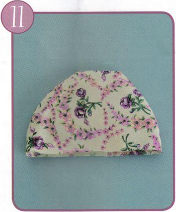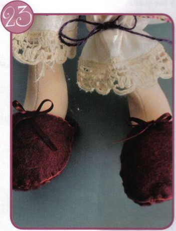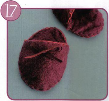 Coloca la parte de la capellada sobre la duela y cose, con punto festón sobre el borde. Pega en la parte superior un moño de cinta.