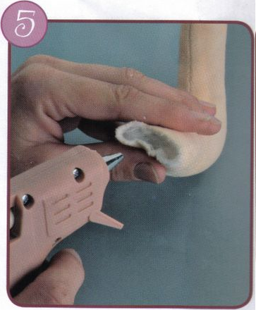 Haz lo mismo con las piernas, coloca un pedazo de alambre doblado y cierra con pegamento.