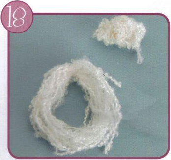 Cabello: Realiza un atado de lana blanca para el rodete y pega en la cabeza.