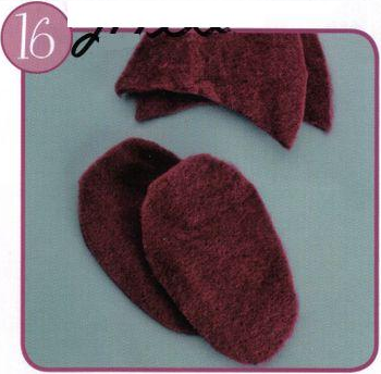 Coloca las pantuflas a la muñeca.