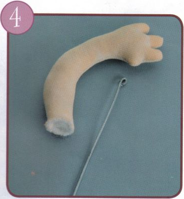 Pasa una bastilla, rellena con vellón, coloca el brazo, pega bien y cierra.