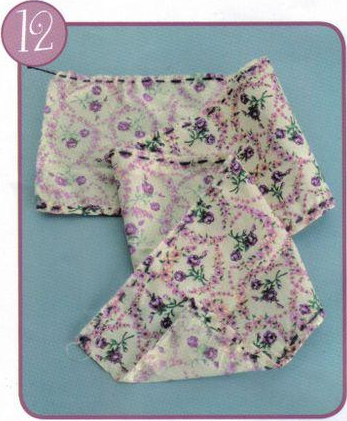 Delantal: Corta un rectángulo de 25 x 10 cm. Realiza un pespunte en el contorno. Luego bastillar la parte inferior. Cose un bolsillo de 12 x 7 cm con puntadas gruesas.