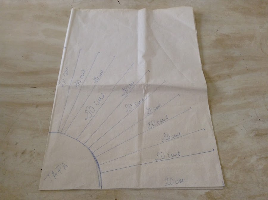 Desde el extremo de la tapa marca 20 cms. en varios puntos.