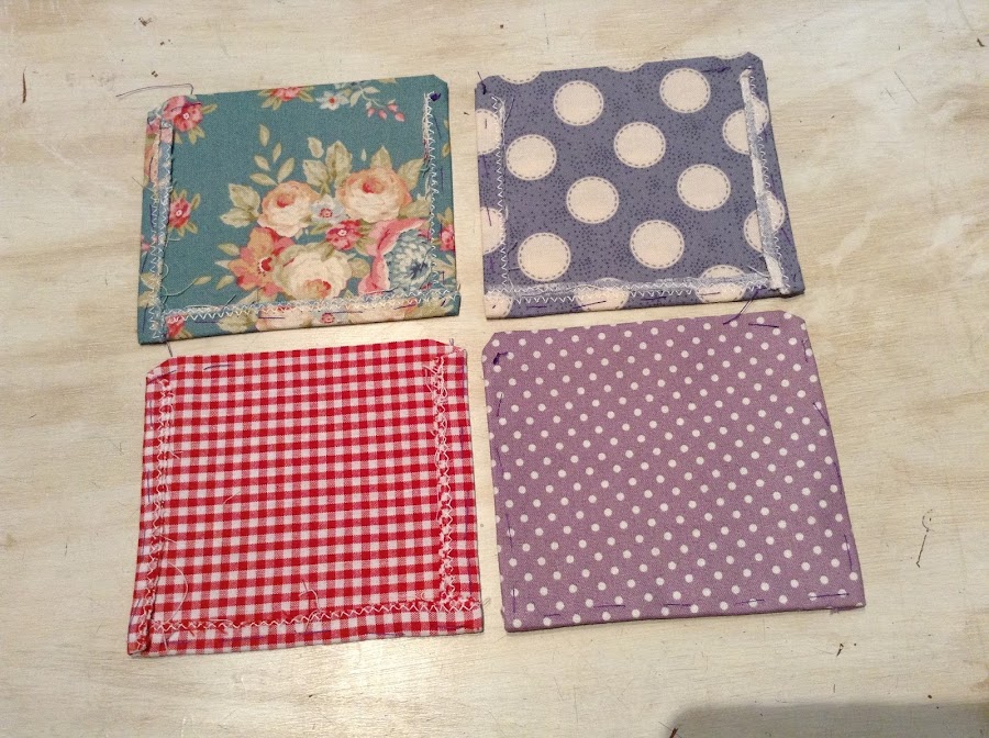 Una vez hayas cortado los 4 bolsillos,(yo he utilizado 4 estampados distintos), pasa un zigzag por los 4 cantos.
