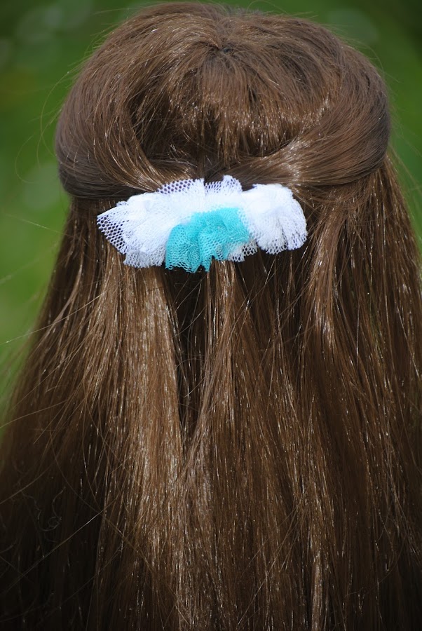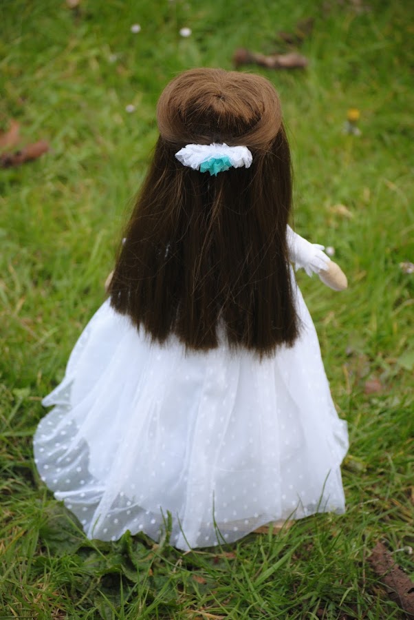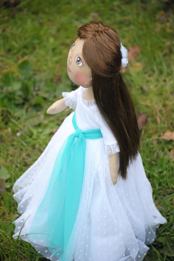 Muñeca de comunión confeccionada en tela de algodón , tull , organdí , pelo sintético.