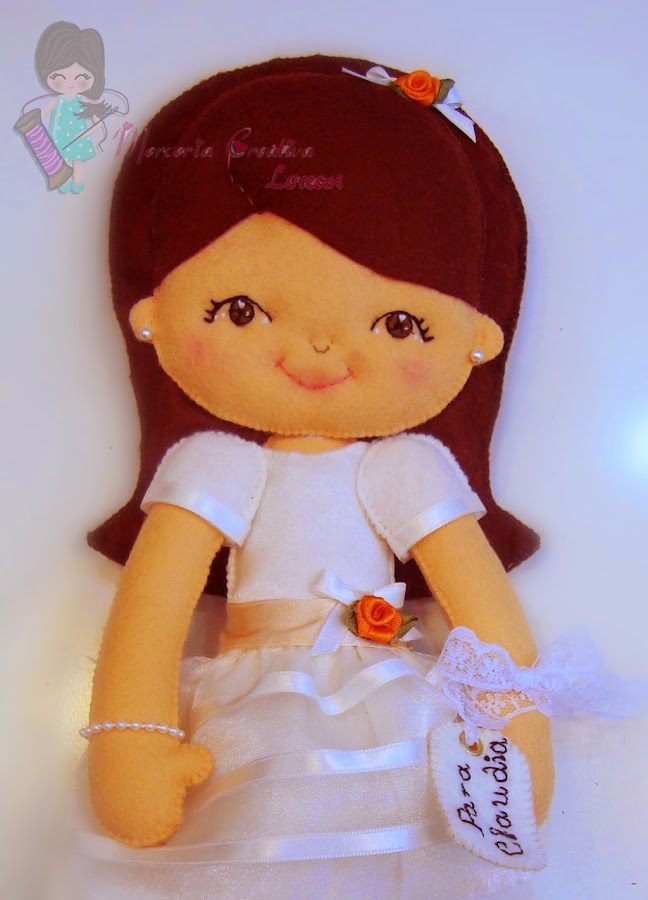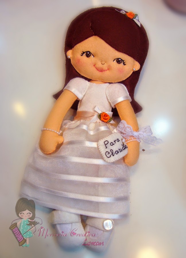 Hoy os voy mostrar una muñeca de comunión que acabo de terminar, está hecha en fieltro y algunos detalles en tela....he personalizado algunos detalles como el color de pelo, vestido,... tiene un tamaño de unos 40 cm ¡espero que os guste!!!