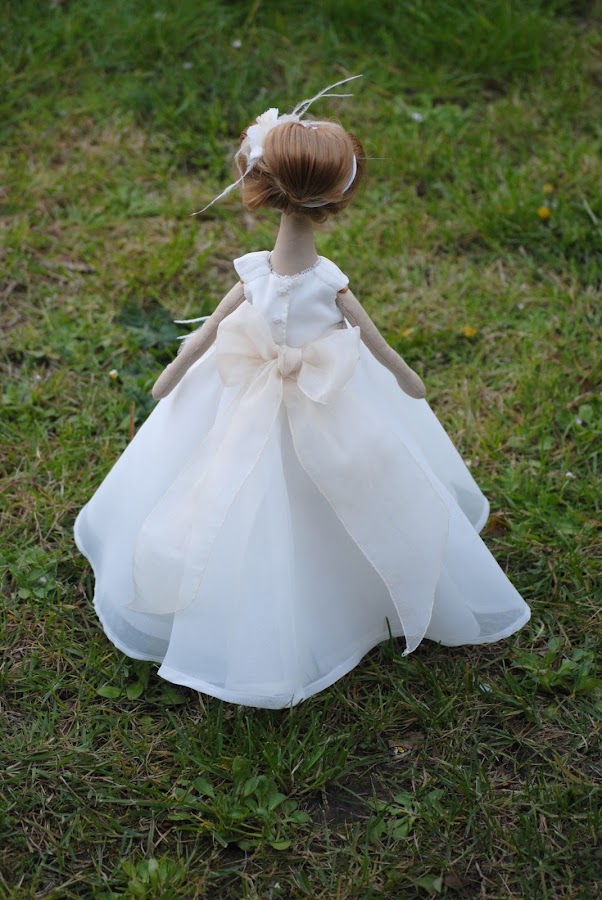 Muñeca confeccionada en algodón , organza y brocado. pelo sintético , cara pintada con pintura de tela. Una belleza me parece este trabajo.