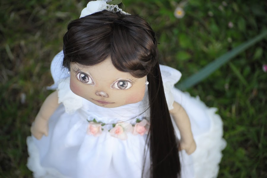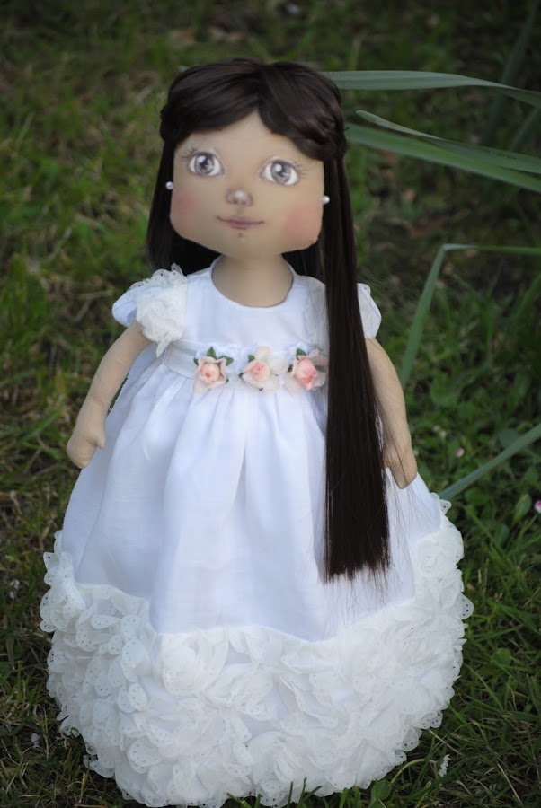 Muñeca de trapo romántica, muñeca confeccionada en tela de algodón , cara pintada con pintura para tela , pelo sintético, pies manos, culete y rodillas esculpidas. Esta muñeca la hice especialmente ...