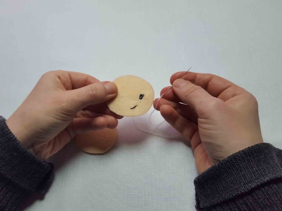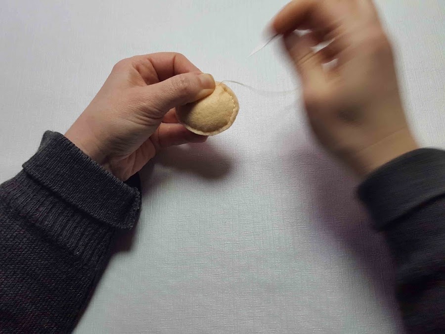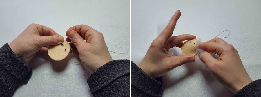 Se juntan las dos partes de la cabeza y se cose dejando un espacio al final para ponerle el relleno. Una vez que esté rellena la cabeza se acaba de coser.