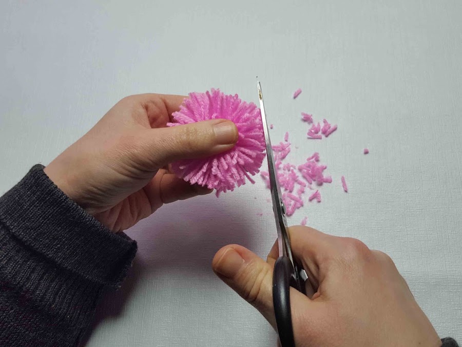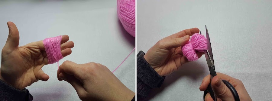 Se hace el pompón de lana con tres dedos y unas 70 vueltas más o menos.