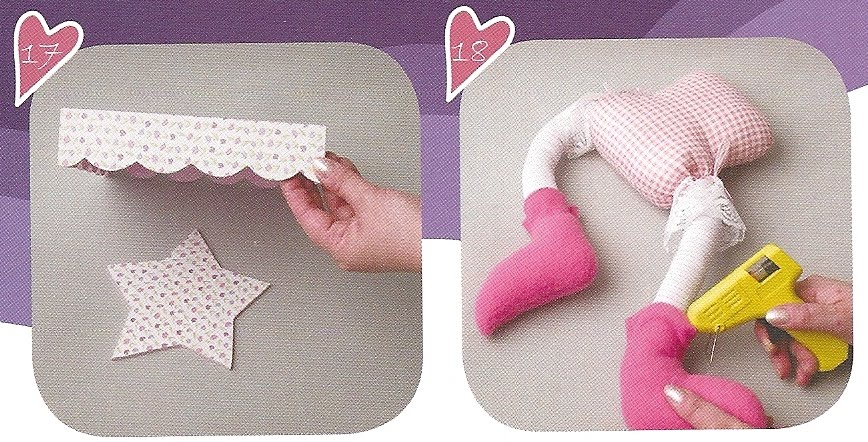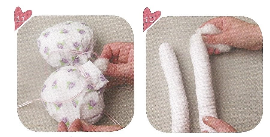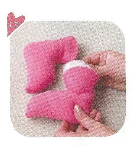 12.- Doblamos a la mitad las piernas, cosemos y rellenamos.