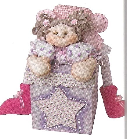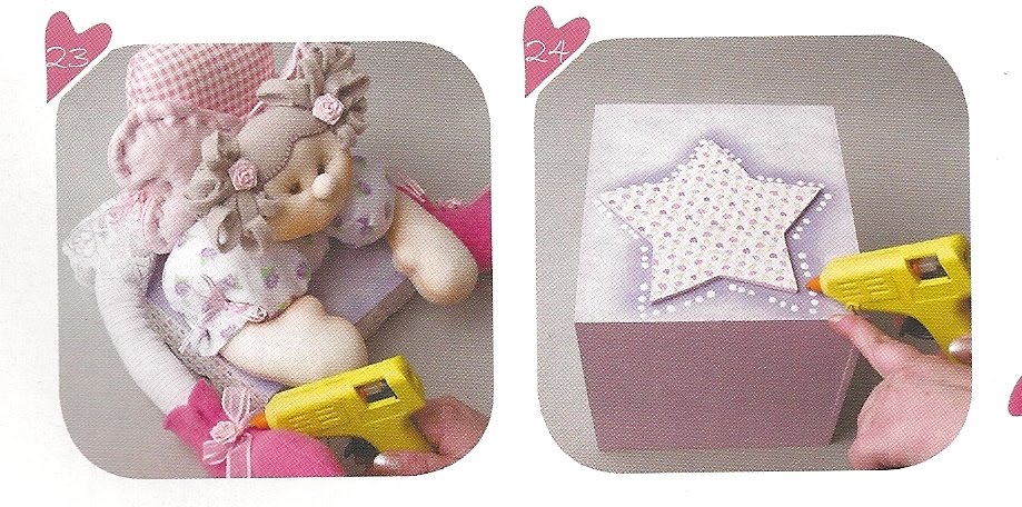22.- Pegamos la muñeca sobre la tapa de la caja.