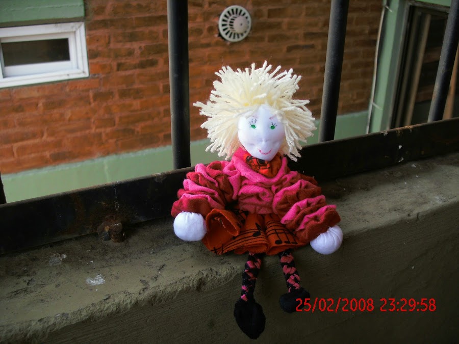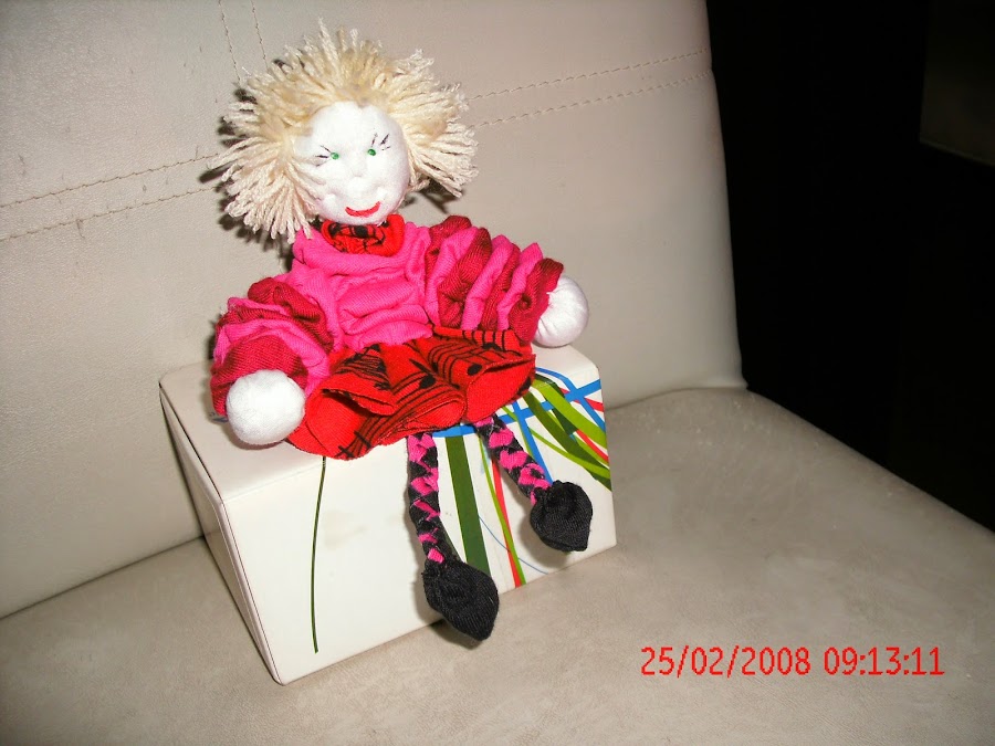 LOS CÍRCULOS DE LA POLLERA SE DOBLAN EN CUATRO Y SE COSE POR LA PUNTA QUE SE FORMA O SEA POR EL VÉRTICE A UNO DE LOS CÍRCULOS, LAS PIERNAS SE COSEN TAMBIÉN EN EL CIRCULO, NO ES NECESARIO QUE ESTE EN EL CENTRO, LUEGO SE COSE EL OTRO CIRCULO SOBRE EL ANTERIOR TAPANDO TODO ESTO Y DEJANDO PROLIJO NUESTRO TRABAJO. PARA LA CABEZA SE FRUNCE EL CIRCULO Y SE RELLENA, LUEGO LE PEGAMOS O COSEMOS ROLLITOS DE LANA PARA EL PELO TAPANDO LA PARTE DONDE FRUNCIMOS Y CERRAMOS, DESPUÉS PINTAR LOS OJOS, BOCA, PESTAÑAS, ETCÉTERA.PARA EL CUERPO SE VAN UNIENDO TODOS LOS YOYO POR EL CENTRO Y SE AGREGA EL CUELLO, HACER LO MISMO CON LOS BRAZOS Y LUEGO UNIR A LOS COSTADO DEL CUERPO,COSER LAS MANOS EN LOS EXTREMOS DE LOS BRAZOS, PARA LOS ZAPATOS DOBLAMOS EL MEDIO CIRCULO Y LO COSEMOS POR EL REVÉS DE LA TELA SOLO DEL LADO MAS DERECHO, LO DAMOS VUELTA Y LO FRUNCIMOS EN EL EXTREMO QUE QUEDO ABIERTO Y ANTES DE CERRAR LO COLOCAMOS EN LAS PIERNAS Y CERRAMOS, SUJETANDO BIEN Y YA CREO QUE ESTA TERMINADA LA MUÑECA. ME FALTABA UNIR LA CABEZA Y YA ESTA.