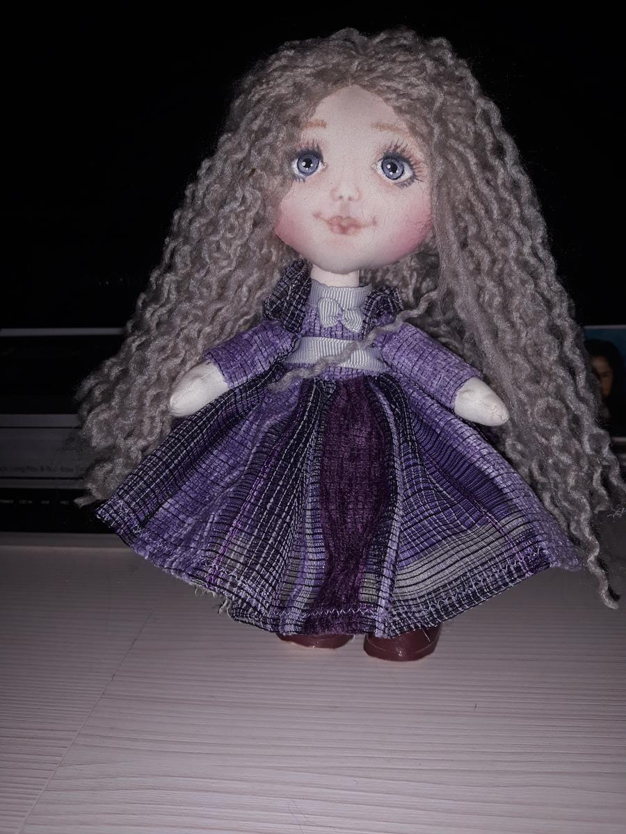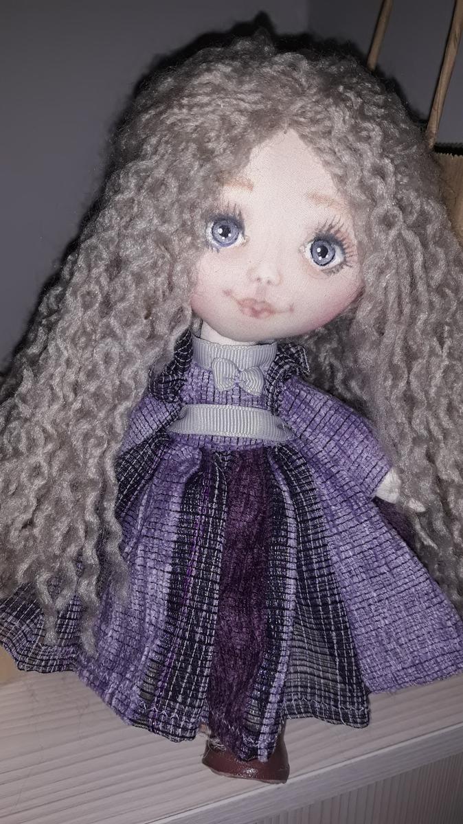 Muñequita de trapo, hecha a mano totalmente, el pelo es de lana, y la carita está pintada, las pinto a mano alzada, por lo que ninguna es igual a otra, cada una tiene una expresión, son únicas, se pueden personalizar, ropa, pelo, color de ojos.
