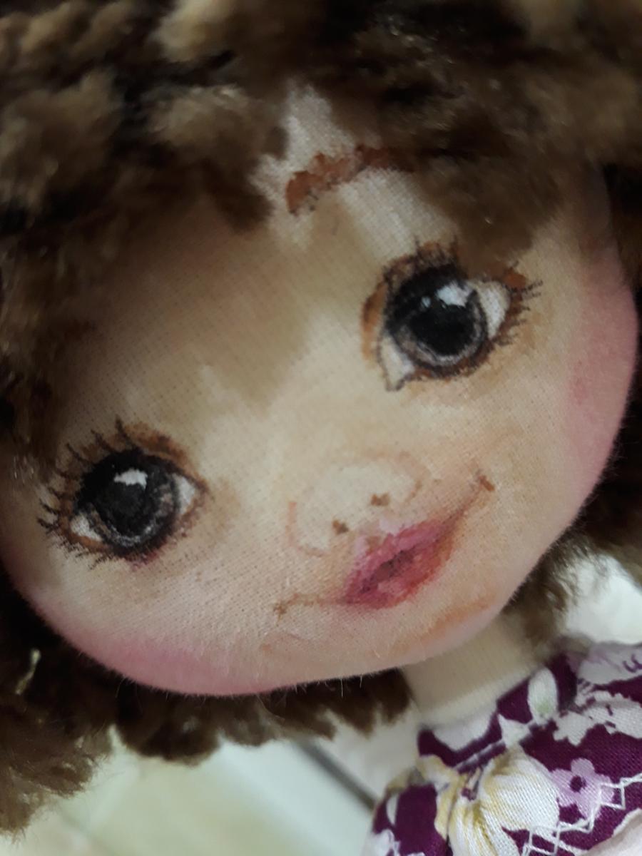 Os dejo diferentes fotos, porque le pinte la carita de diferente forma, porque pensando si algún día la ponen en la lavadora, la he pintado con pintura especial para tela, por eso algunas caras se ven más borrosas.