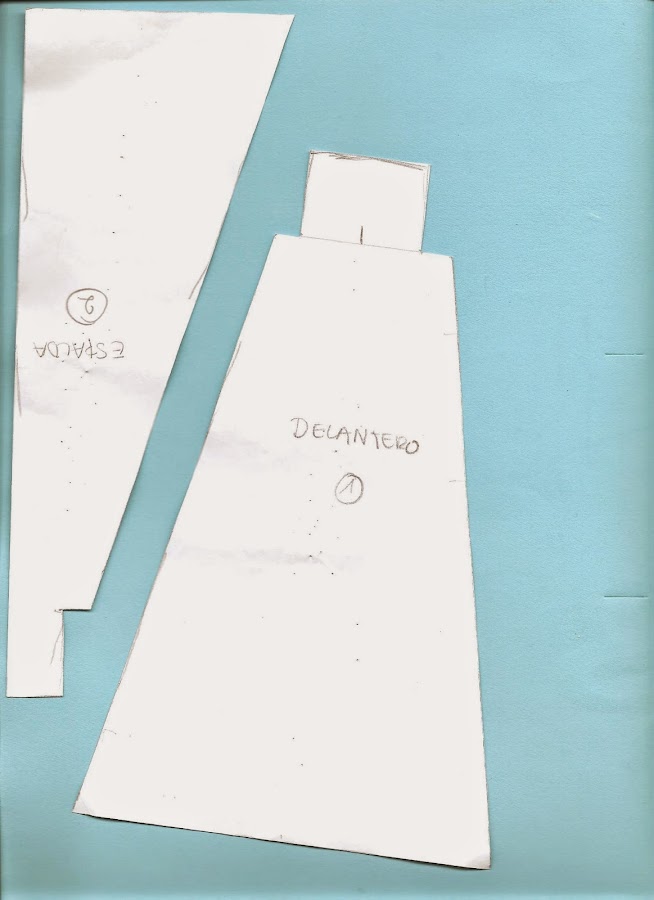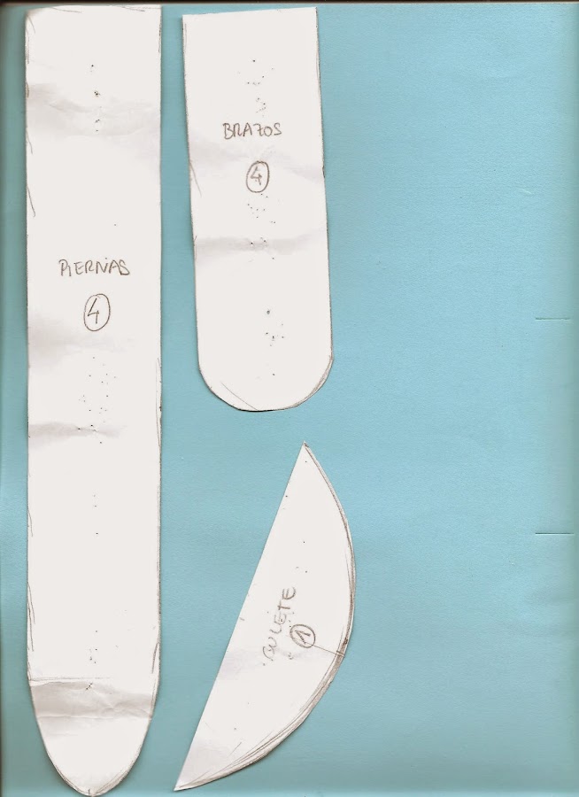 Sacaremos el patrón. Yo lo dibujé sobre papel como se me ocurrió pues la muñeca la hice de mi imaginación (no se parece nada a la de pequeña, pues era gordita y rechoncheta!!!)