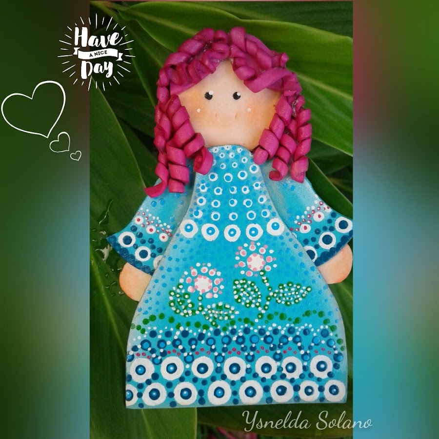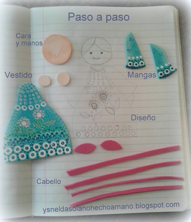 En este post, un pequeño diseño con puntos que he realizado para decorar el vestido de esta muñequita en goma eva: