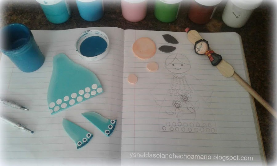 *Piezas según patrón o molde, de Goma eva o foami, color azul, fucsia y color piel.
