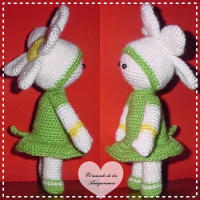 Hace poco que terminé esta pequeña y preciosa muñeca. Hacía algún tiempo mi madre me decía "me gustaría tener una margarita"? así como el que no quiere la cosa. Entonces pensé en las fusiones que hace Zabbez con sus muñecas y las flores. Me gustó mucho la nenúfar Winnie, pero como mi madre quería "una margarita". Pues fusioné el cuerpo de una muñeca de un patrón que tenía, con una margarita y este es el resultado. A mi madre le encantó, que era lo principal, ¿y a vosotros?